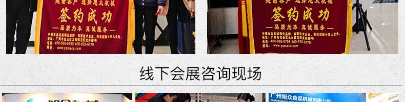 廣州旭眾食品機械有限公司是一家集科研開發(fā),生產(chǎn)設計,營銷服務為一體的現(xiàn)代化生產(chǎn)企業(yè)。現(xiàn)代化生產(chǎn)車間,精湛制造技術(shù),所產(chǎn)機械歷經(jīng)市場重重考驗,不斷贏得海內(nèi)外客戶的贊譽。