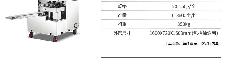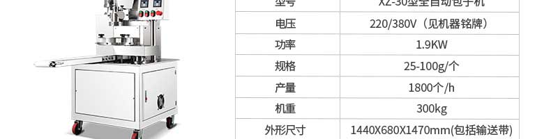 名稱XZ-915智能包子機 電源220/380v 功率1.55kw 產(chǎn)量0-36000個/h 尺寸1530*670*1650mm 重量250kg 規(guī)格 其他