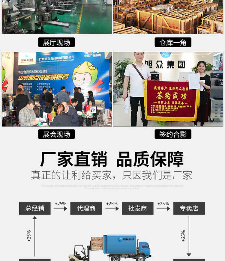 廣州旭眾食品機(jī)械有限公司是一家集科研開發(fā),生產(chǎn)設(shè)計,營銷服務(wù)為一體的現(xiàn)代化生產(chǎn)企業(yè)。現(xiàn)代化生產(chǎn)車間,精湛制造技術(shù),所產(chǎn)機(jī)械歷經(jīng)市場重重考驗,不斷贏得海內(nèi)外客戶的贊譽(yù)。