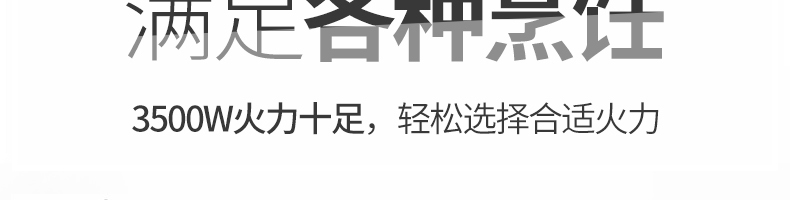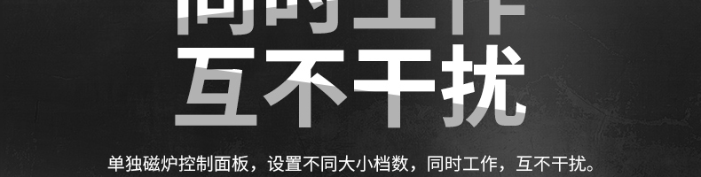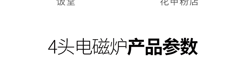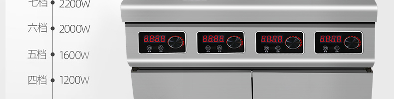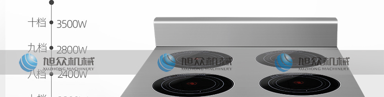 四頭柜式電磁爐,10檔調節(jié),滿足各種烹飪。3500W火力十足,輕松選擇合適火力。同時工作互不干擾單獨磁爐控制面板,設置不同大小檔數(shù),同時工作,互不干擾。