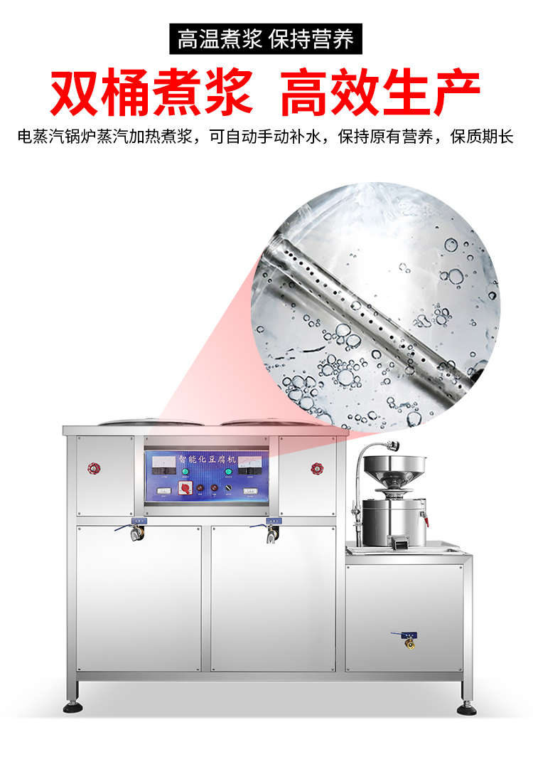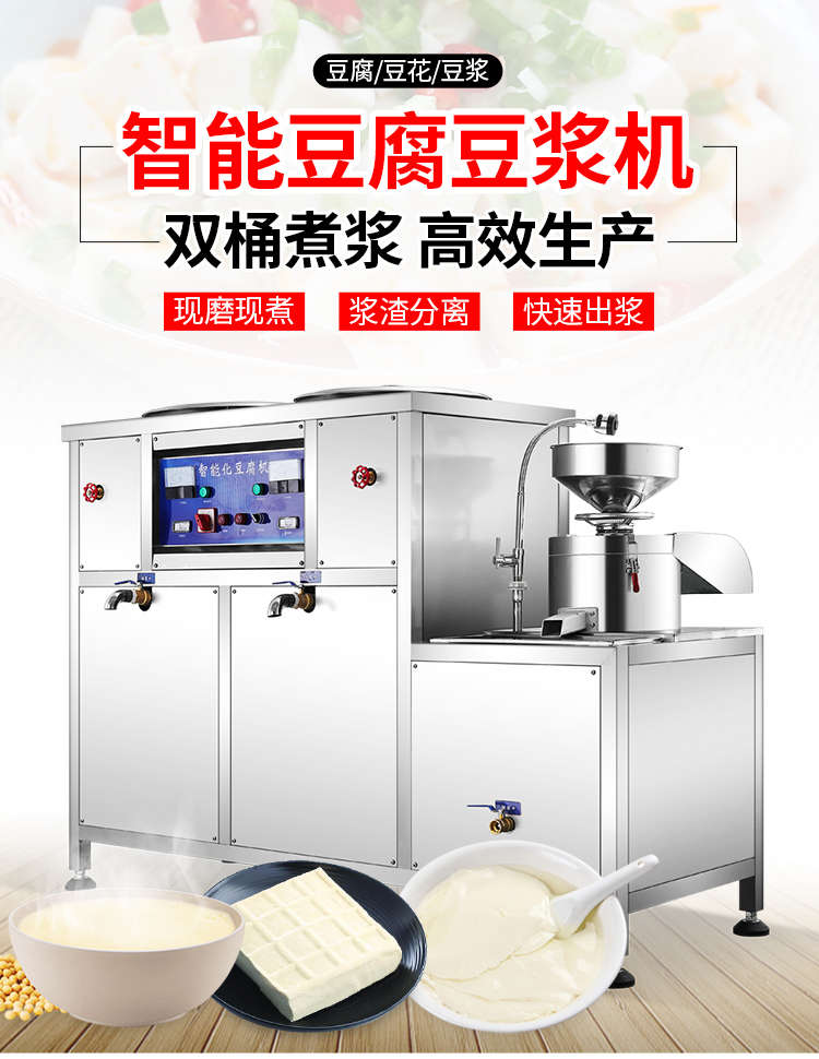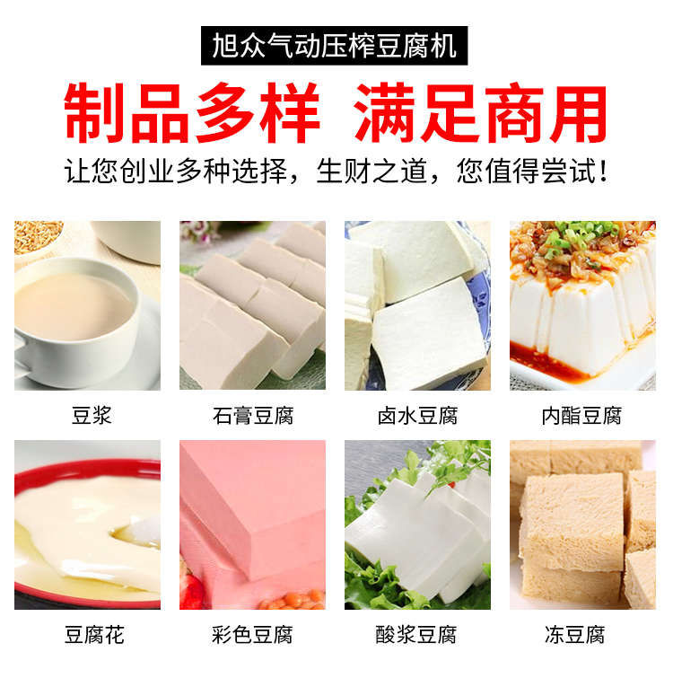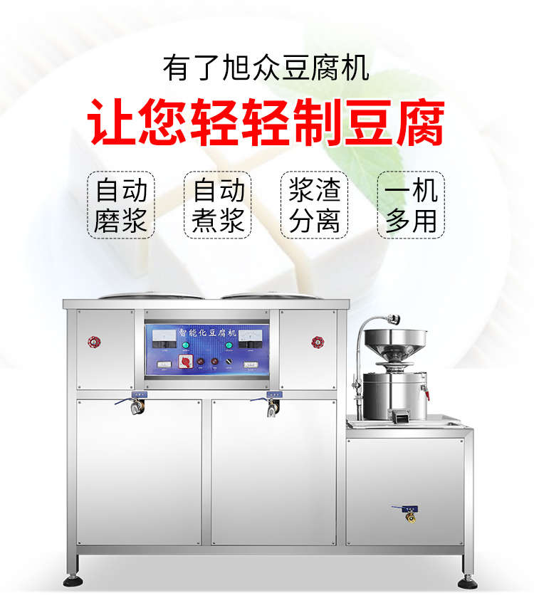 XZ-300型氣動壓榨豆腐機,智能豆腐豆?jié){機,雙桶煮漿高效生產(chǎn)現(xiàn)磨現(xiàn)煮,漿渣分離快速出漿。機器運行穩(wěn)定不銹鋼材質(zhì)打造,堅固耐用,安全衛(wèi)生,時尚大方,易于清洗。