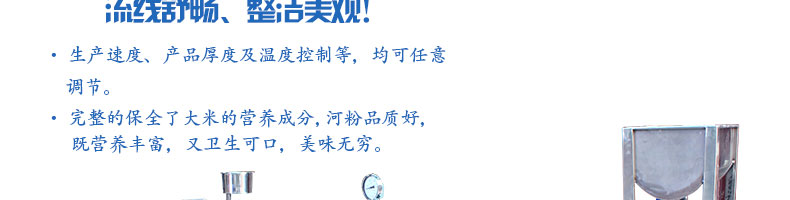 SZ-HF-80高效節(jié)能河粉機,用高效節(jié)能河粉機生產(chǎn)的河粉,完整保全了大米的營養(yǎng)成分,河粉品質(zhì)一流,既營養(yǎng)豐富,又衛(wèi)生可口、美味無窮。
