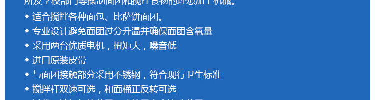 SZH-30型雙速雙動和面機(jī),本機(jī)適合攪拌各種面包、包子、饅頭、湯圓、披薩餅面團(tuán),專業(yè)設(shè)計(jì)避免面團(tuán)過分升溫并確保面團(tuán)含氧量。過載、缺相保護(hù)裝置,防護(hù)罩安全連動裝置。