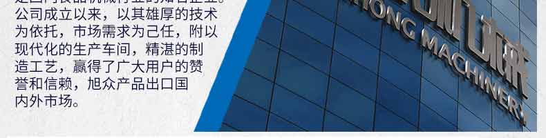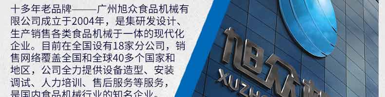 廣州旭眾食品機(jī)械有限公司是一家集科研開(kāi)發(fā),生產(chǎn)設(shè)計(jì),營(yíng)銷服務(wù)為一體的現(xiàn)代化生產(chǎn)企業(yè)?,F(xiàn)代化生產(chǎn)車(chē)間,精湛制造技術(shù),所產(chǎn)機(jī)械歷經(jīng)市場(chǎng)重重考驗(yàn),不斷贏得海內(nèi)外客戶的贊譽(yù)。