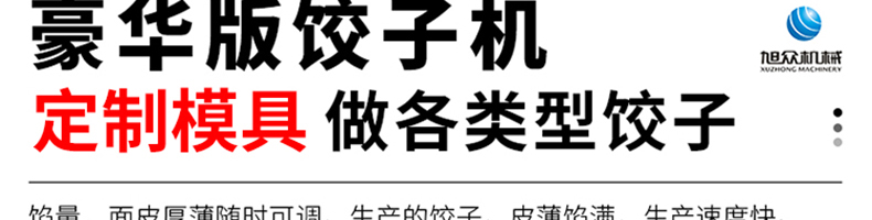 210豪華餃子機(jī),實(shí)力強(qiáng)勁、超高效率一小時(shí)可做大約20000個(gè)餃子!可生產(chǎn)速凍餃子、各種肉餡、肉菜混合餡、全菜餡以及其他種餡的餃子。