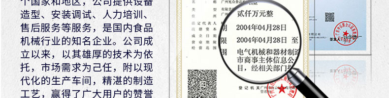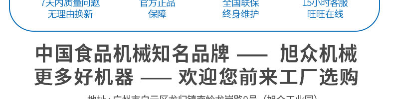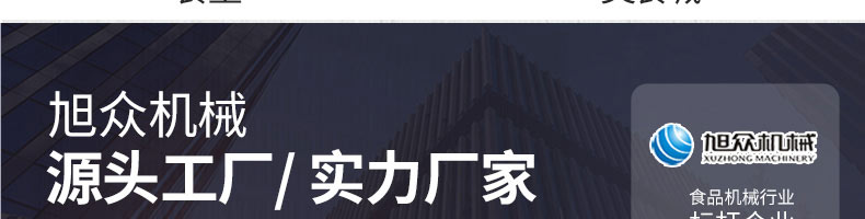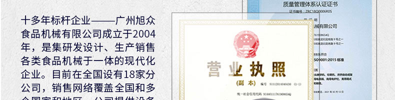 廣州旭眾食品機械有限公司是一家集科研開發(fā),生產設計,營銷服務為一體的現(xiàn)代化生產企業(yè)。現(xiàn)代化生產車間,精湛制造技術,所產機械歷經(jīng)市場重重考驗,不斷贏得海內外客戶的贊譽。