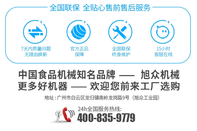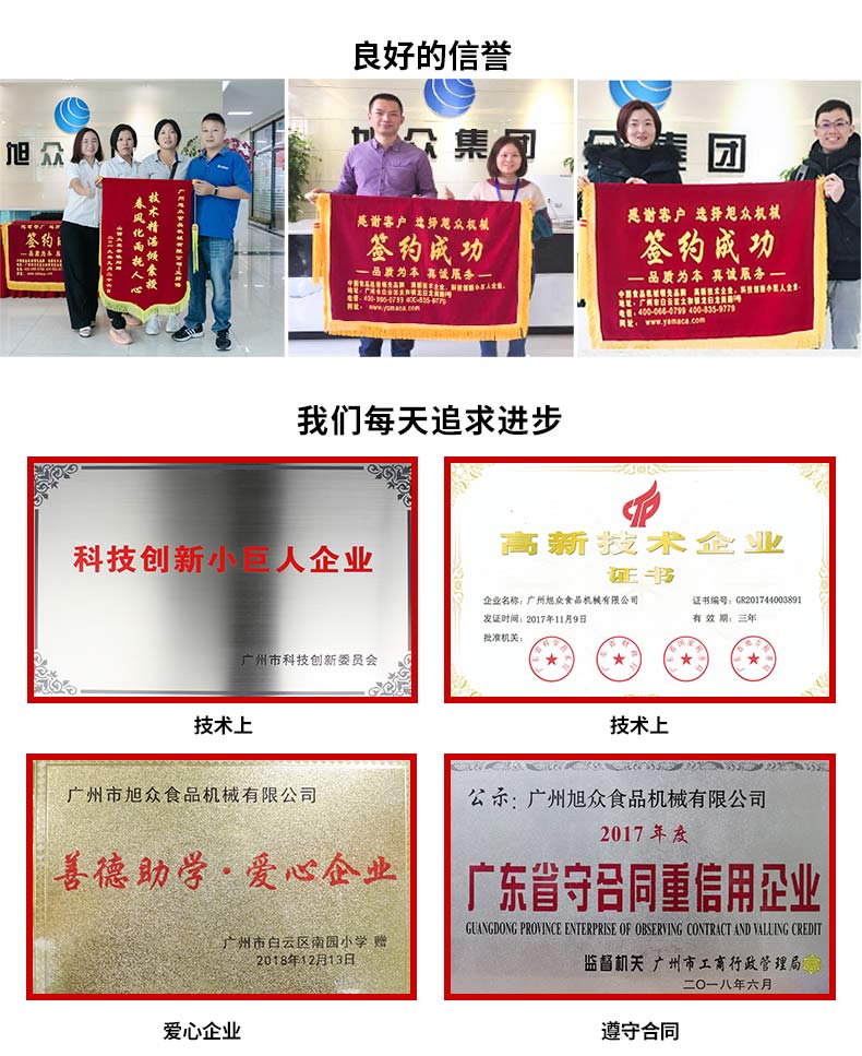 廣州旭眾食品機(jī)械有限公司是一家集科研開(kāi)發(fā),生產(chǎn)設(shè)計(jì),營(yíng)銷(xiāo)服務(wù)為一體的現(xiàn)代化生產(chǎn)企業(yè)。現(xiàn)代化生產(chǎn)車(chē)間,精湛制造技術(shù),所產(chǎn)機(jī)械歷經(jīng)市場(chǎng)重重考驗(yàn),不斷贏得海內(nèi)外客戶(hù)的贊譽(yù)。