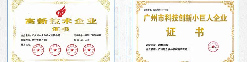 廣州旭眾食品機械有限公司是一家集科研開發(fā),生產(chǎn)設(shè)計,營銷服務(wù)為一體的現(xiàn)代化生產(chǎn)企業(yè)。現(xiàn)代化生產(chǎn)車間,精湛制造技術(shù),所產(chǎn)機械歷經(jīng)市場重重考驗,不斷贏得海內(nèi)外客戶的贊譽。