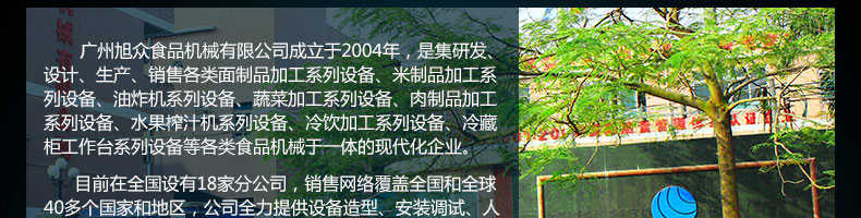 廣州旭眾食品機械有限公司是一家集科研開發(fā),生產(chǎn)設(shè)計,營銷服務(wù)為一體的現(xiàn)代化生產(chǎn)企業(yè)。現(xiàn)代化生產(chǎn)車間,精湛制造技術(shù),所產(chǎn)機械歷經(jīng)市場重重考驗,不斷贏得海內(nèi)外客戶的贊譽。