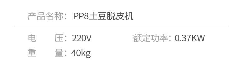 PP8、PP15薯仔脫皮機,土豆脫皮機,是采用離心旋轉(zhuǎn),摩擦脫皮技術(shù),工作效率高,主要用于土豆,芋頭表面脫皮。適用于肯德基店、酒店、食堂等。