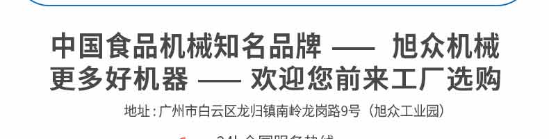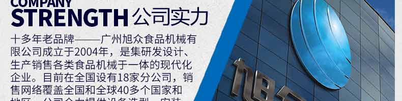 廣州旭眾食品機(jī)械有限公司是一家集科研開發(fā),生產(chǎn)設(shè)計(jì),營銷服務(wù)為一體的現(xiàn)代化生產(chǎn)企業(yè)?,F(xiàn)代化生產(chǎn)車間,精湛制造技術(shù),所產(chǎn)機(jī)械歷經(jīng)市場(chǎng)重重考驗(yàn),不斷贏得海內(nèi)外客戶的贊譽(yù)。