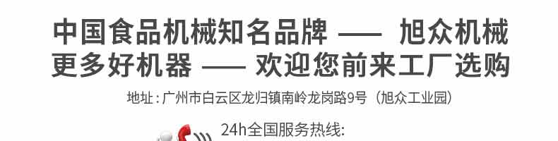 廣州旭眾食品機(jī)械有限公司是一家集科研開發(fā),生產(chǎn)設(shè)計(jì),營(yíng)銷服務(wù)為一體的現(xiàn)代化生產(chǎn)企業(yè)?,F(xiàn)代化生產(chǎn)車間,精湛制造技術(shù),所產(chǎn)機(jī)械歷經(jīng)市場(chǎng)重重考驗(yàn),不斷贏得海內(nèi)外客戶的贊譽(yù)。