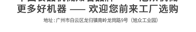 廣州旭眾食品機械有限公司是一家集科研開發(fā),生產設計,營銷服務為一體的現代化生產企業(yè)。現代化生產車間,精湛制造技術,所產機械歷經市場重重考驗,不斷贏得海內外客戶的贊譽。