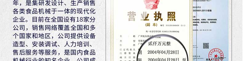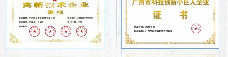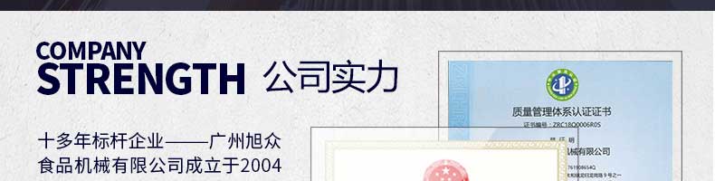 廣州旭眾食品機械有限公司是一家集科研開發(fā),生產設計,營銷服務為一體的現代化生產企業(yè)。現代化生產車間,精湛制造技術,所產機械歷經市場重重考驗,不斷贏得海內外客戶的贊譽。
