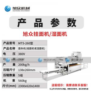 MT5-260型面條機,不同的面刀可以做出不同形狀的面食做工細,實用又方便,出面均勻,成型漂亮,可咨洵客服了解詳情
