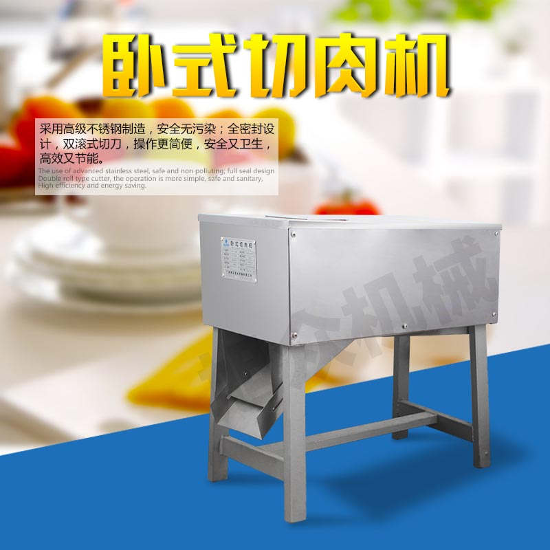 SX300B 臥式切肉機,臥式切肉機均采用雙滾刀結(jié)構(gòu),有臥式和立式兩種型式。各種款式切肉機原動力和刀梳、切肉部分的原理,結(jié)構(gòu)大致相同,都具有結(jié)構(gòu)緊湊,外形美觀、操作方便、效率高、耗電小、清潔保養(yǎng)容易、安全衛(wèi)生、切肉效果好等優(yōu)點。
