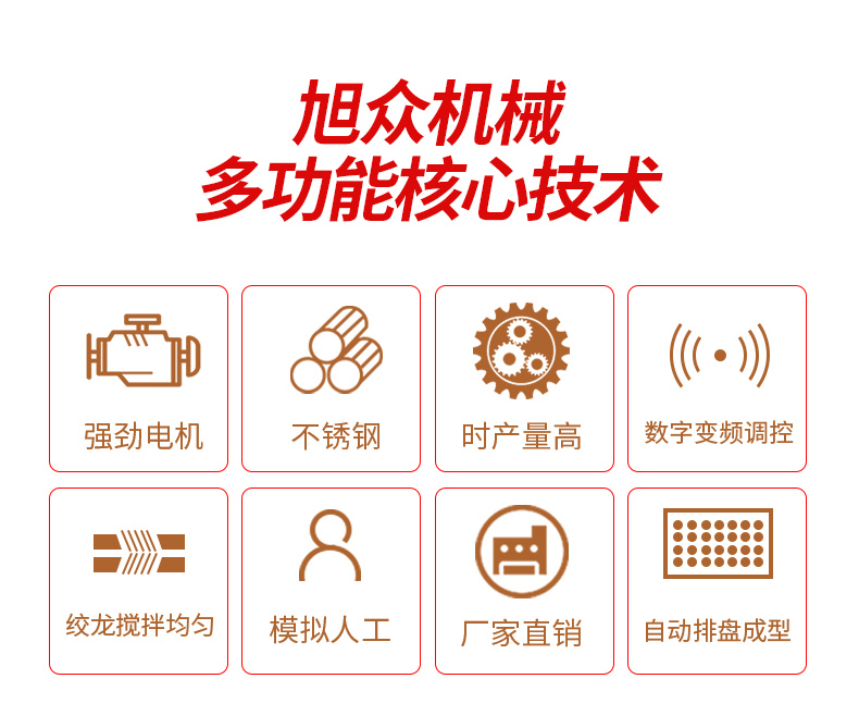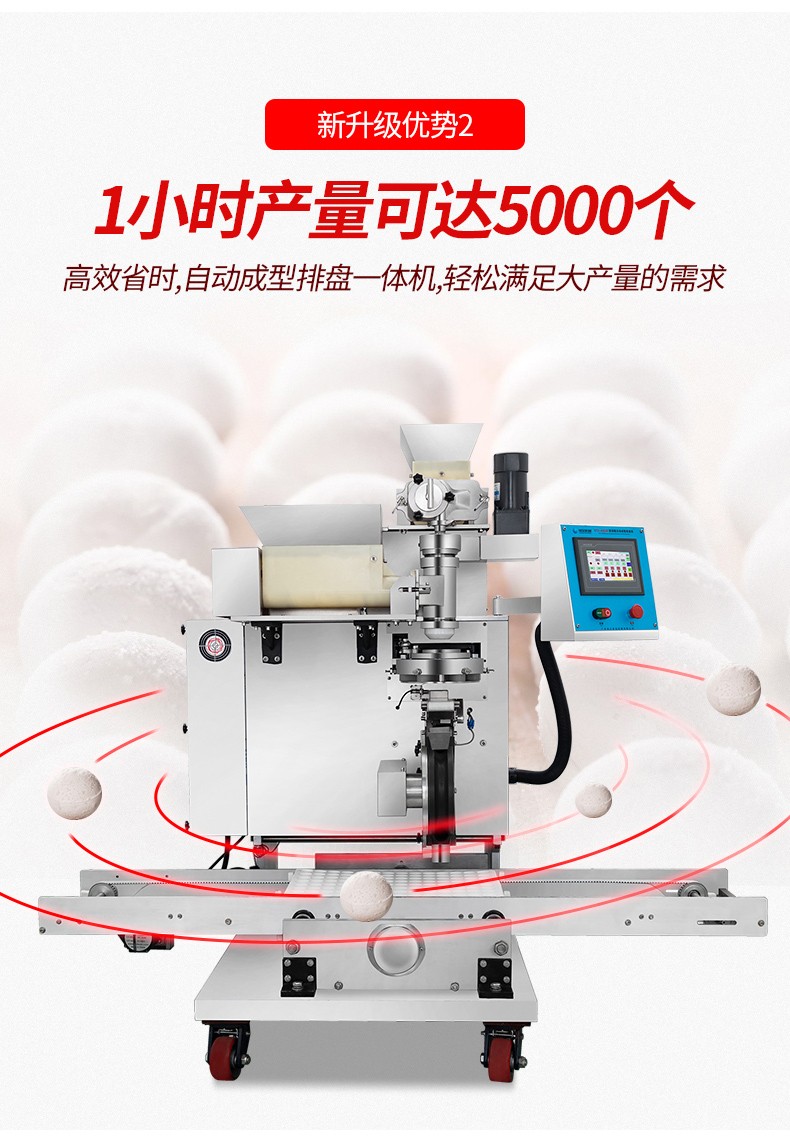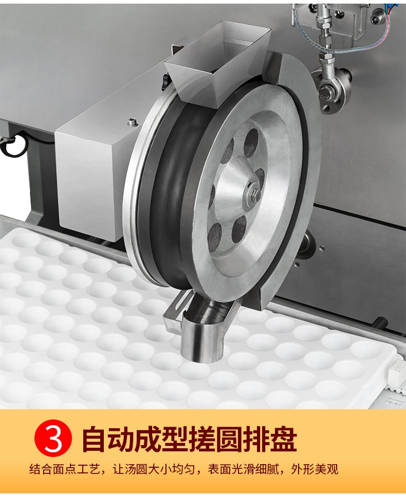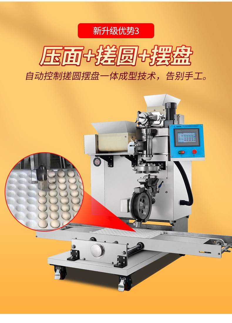 ◆觸摸屏自動(dòng)控制搓圓擺盤(pán)一體成型技術(shù),使得制品外形美觀,大小均勻,表面光亮細(xì)膩、口感柔滑,彈韌性佳。